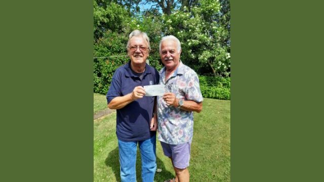 W.Bro. John Aslatt & W/Bro John Hibbert, of Kilmorey Lodge no 7109 (Craft), who is Chairman of “Bouncing Back Group” receiving a cheque for £100 from C & N.W District of Allied Masonic Degrees.